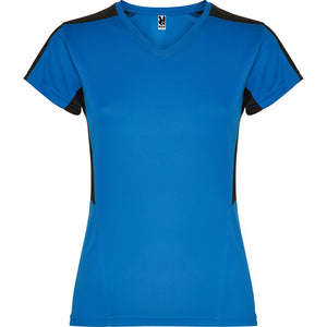 Women's V-Neck Short-Sleeve Technical t-shirt - White and Turquoise