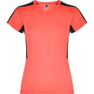 Women's V-Neck Short-Sleeve Technical t-shirt - Coral Pink and Black