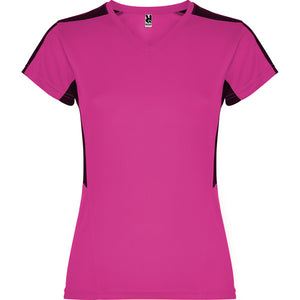 Women's V-Neck Short-Sleeve Technical t-shirt - Fuschia and Black